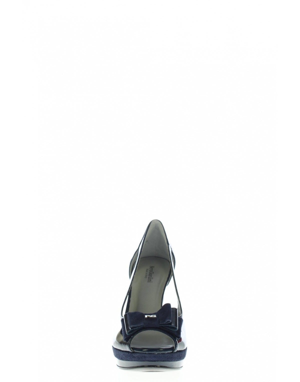 Aperto lati in vernice con fiocco in camoscio e vernice con logo, fondo gomma con plateau altezza 2 cm tacco in abs altezza 10,5. La calzata è normale per un maggior comfort scegliere il solito numero.100% pelle Made in Italy